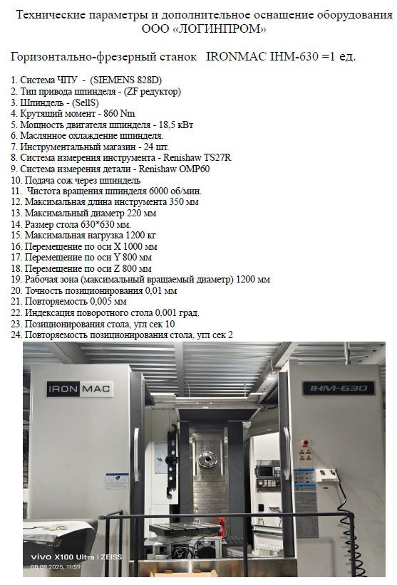 1 Горизонтально-фрезерный станок IRONMAC IHM-630 =1 ед.