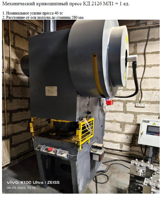 14 Механический кривошипный пресс КД 2126 МЛ1 = 1 ед.