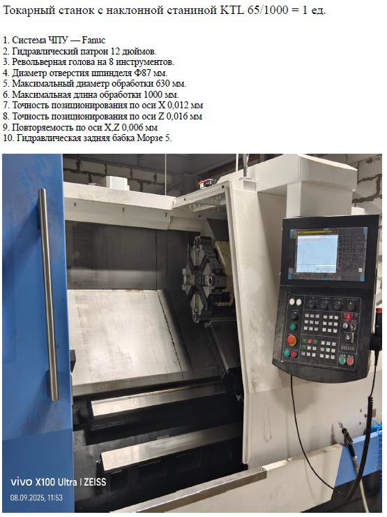 5 Токарный станок с наклонной станиной KTL 65/1000 = 1 ед.